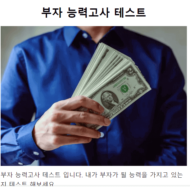 부자능력고사 테스트 한번 해보실래요? 내가 부자가 될 능력을 가지고 있는지 테스트해보세요.